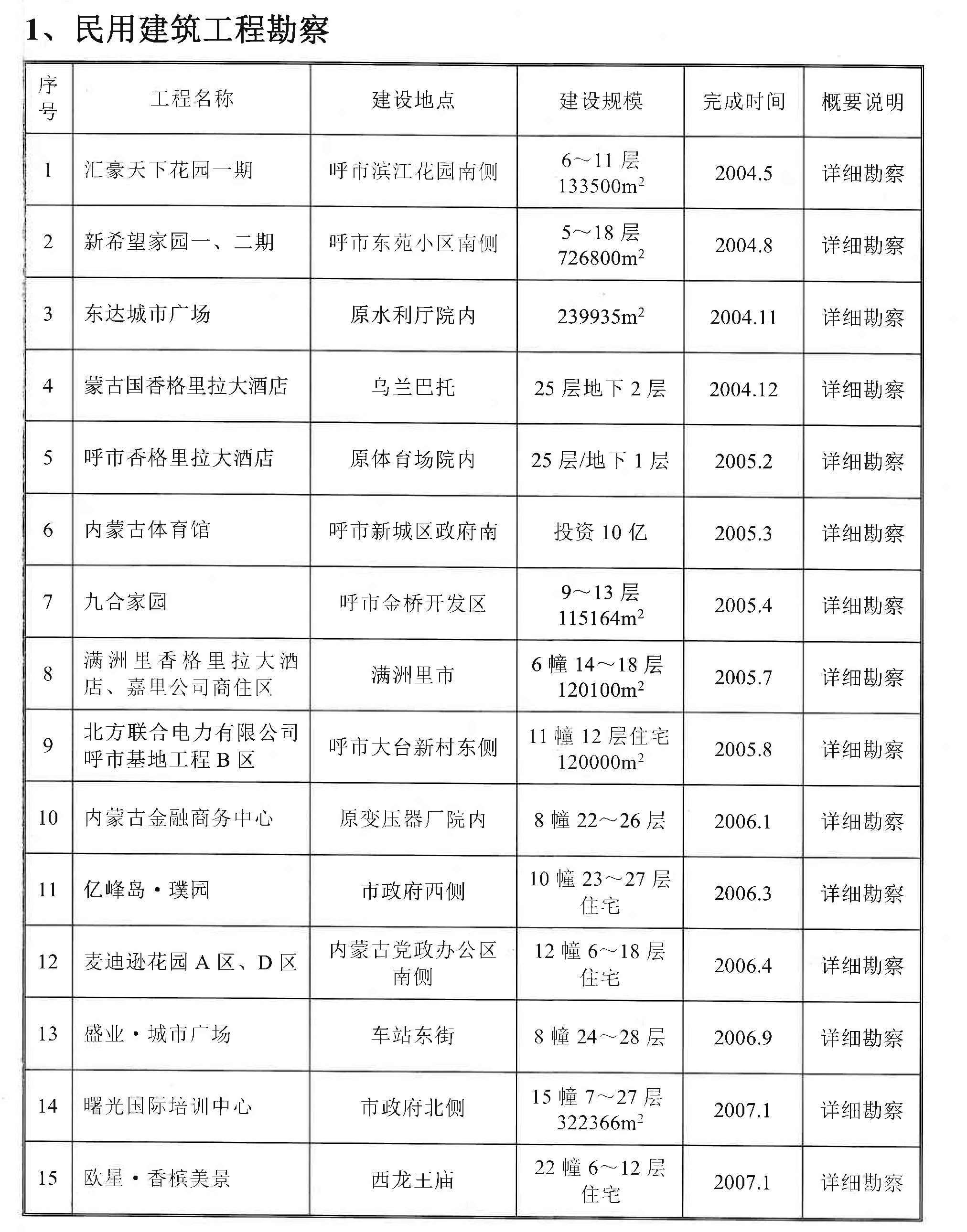 • 內(nèi)蒙古建筑勘察設(shè)計(jì)研究院勘測(cè)有限責(zé)任公司,是全國(guó)首家完成 轉(zhuǎn)企建制的省級(jí)建筑勘察設(shè)計(jì)單位。公司前身為內(nèi)蒙古建筑勘察 設(shè)計(jì)研究院勘測(cè)分院, 成立于1954年 ,經(jīng)過六十多年的發(fā)展, 現(xiàn)已成為全區(qū)技術(shù)力量雄厚、專業(yè)設(shè)置齊全的集巖土工程勘察 、 設(shè)計(jì)、治理、檢測(cè)、監(jiān)理、咨詢、水文地質(zhì)勘查、工程測(cè)量、科 研為一體的綜合性企業(yè) ... ... [查看詳情]